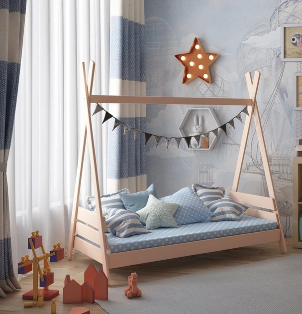 Ліжко-будиночок з натурального дерева сосна Дрім 70x140 персиковий Stemma