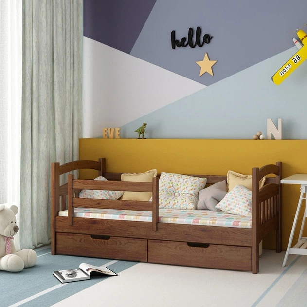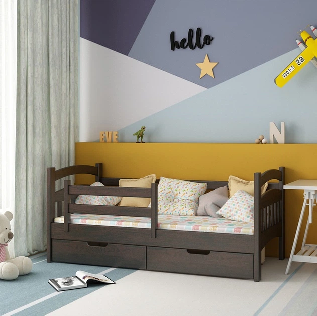 Ліжко з натурального дерева сосна Джой 80x200 темний горіх Stemma з ящиками