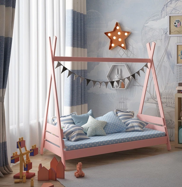 Ліжко-будиночок з натурального дерева сосна Дрім 70x140 рожевий Stemma