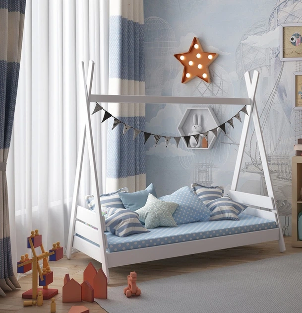 Ліжко-будиночок з натурального дерева сосна Дрім 70x140 білий Stemma