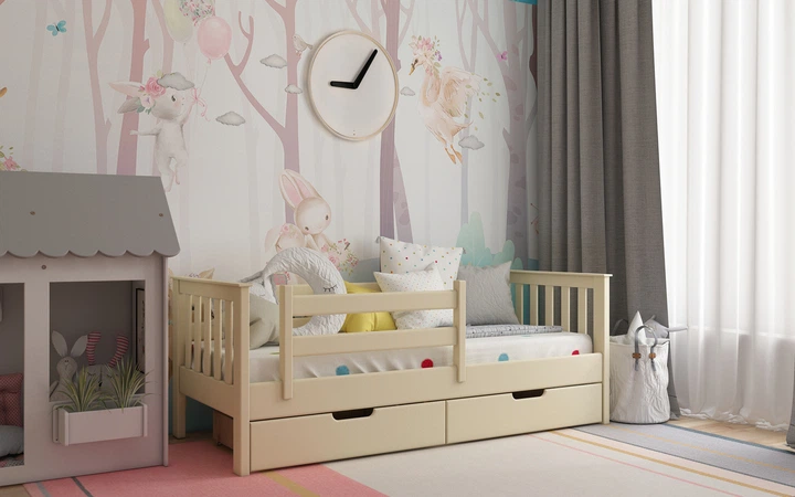 Ліжко з натурального дерева сосна Доріс 80x200 айворі Stemma з ящиками