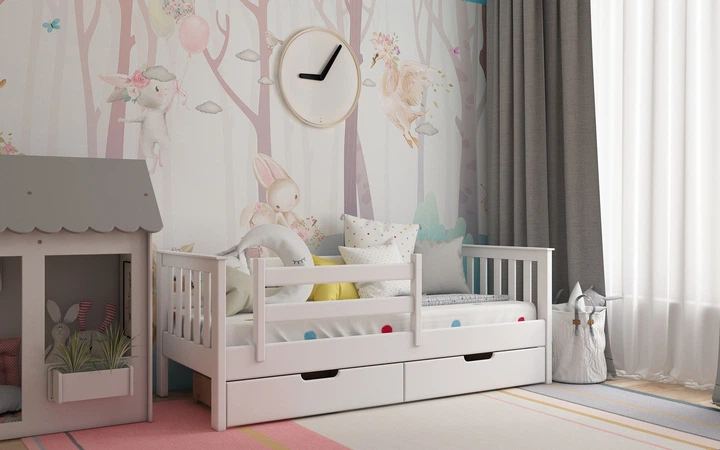 Ліжко з натурального дерева сосна Доріс 80x200 білий Stemma з ящиками