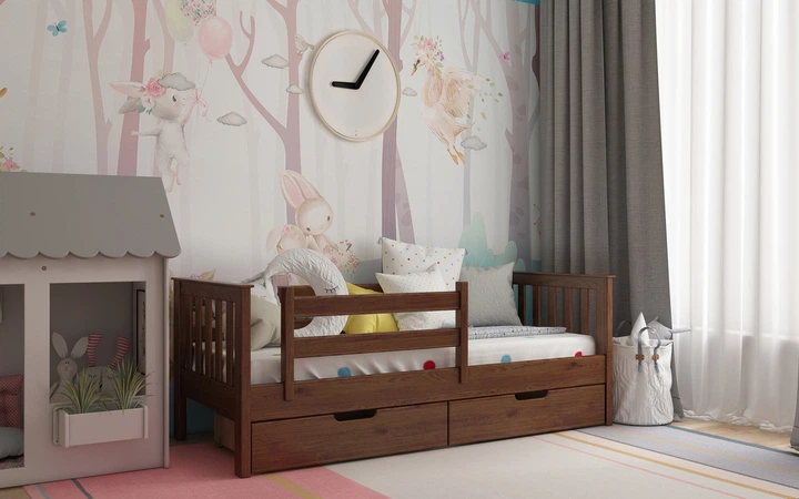 Ліжко з натурального дерева сосна Доріс 80x200 темний горіх Stemma з ящиками