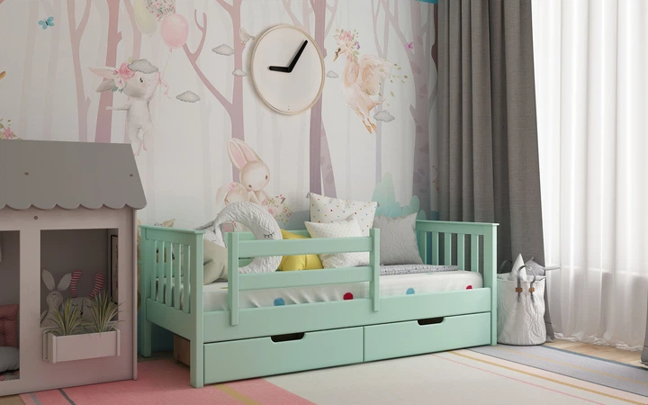 Ліжко з натурального дерева сосна Доріс 80x200 м'ятний Stemma з ящиками