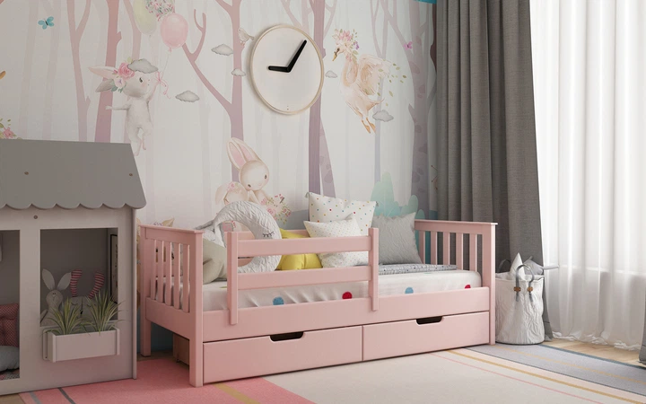 Ліжко з натурального дерева сосна Доріс 80x200 рожевий Stemma з ящиками