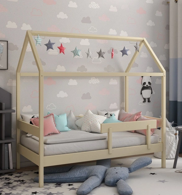 Ліжко-будиночок з натурального дерева сосна Сканді 80x160 айворі Stemma