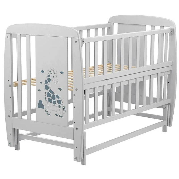 Дитяче ліжечко для новонародженої дитини з маятником і бортиком ліжко Дубок Жирафка з маятниковим механізмом шухлядою бук 12