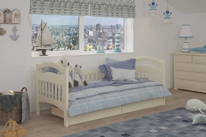 Дитяче ліжко Mebigrand Жасмін Літл Айворі (S0505Y30R) 80х190 см із заднім бортиком та ящиками (MBG-2472)
