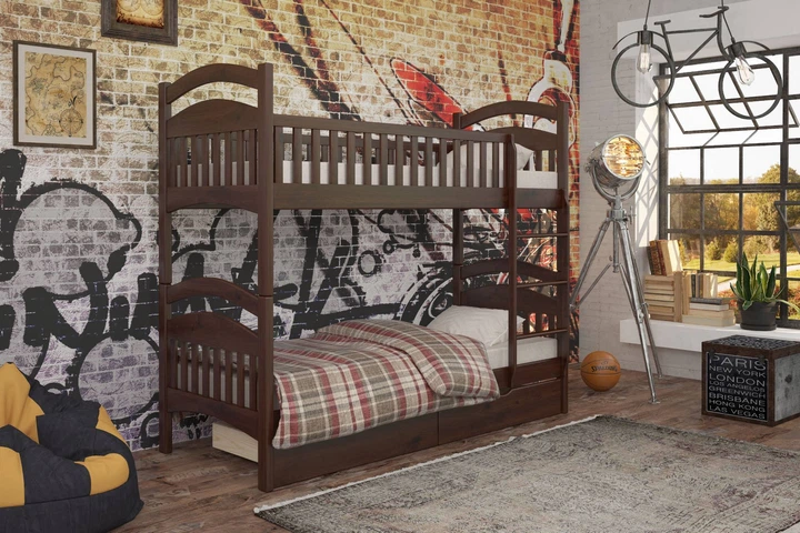 Двоярусне дитяче ліжко Mebigrand Жасмін Горіх лісовий 80х200 см з ящиками (MBG-2331)
