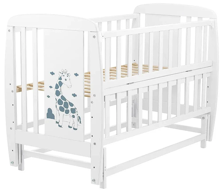Дитяче ліжечко для новонародженої дитини з маятником і бортиком ліжко Дубок Жирафка з маятниковим механізмом шухлядою бук 12