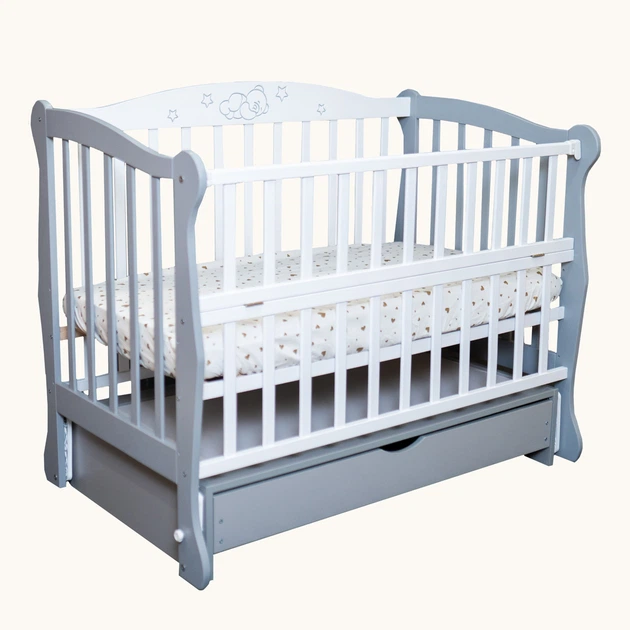 Ліжко дитяче Престиж Dominanta біле з сірим з шухлядою 120х60