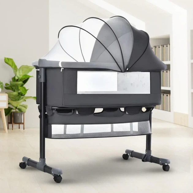Багатофункціональне дитяче приставне ліжечко-гойдалка 5087 см з пеленальним столиком, регулюванням нахилу та сіткою