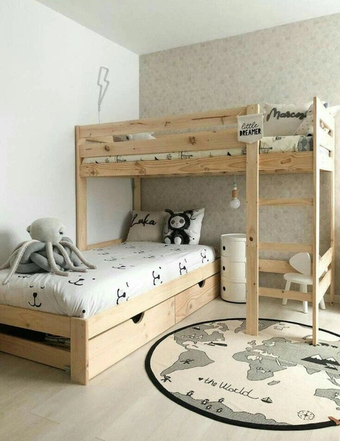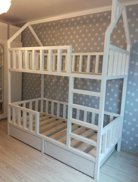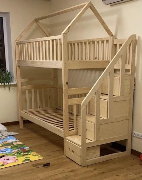 Ліжко дитяче двохповерхове з натурального дерева ( сосна) (6675534)