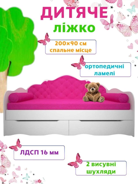 Дитяче односпальне ліжко підліткове Л 6 м`яка спинка 2 висувні шухляди односпальні дитячі ліжка одномісні для підлітків з дс