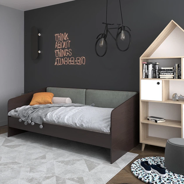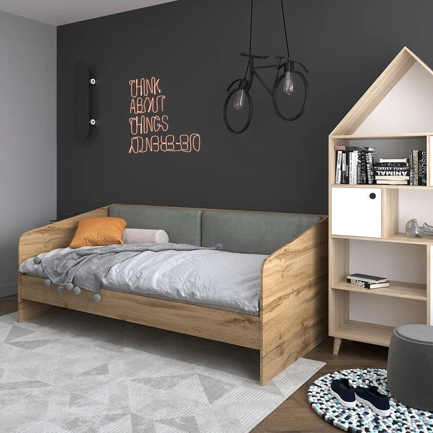 Дитяче односпальне ліжко підліткове Л 9 з м'якою спинкою та висувними ящиками односпальні дитячі ліжка для підлітків 1900 х