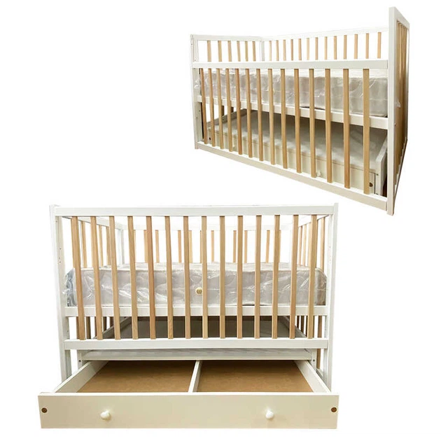 Ліжечко дитяче "Софія" - шарнір-підшипник+ящик з опускною боковиною (Білий+натуральний)