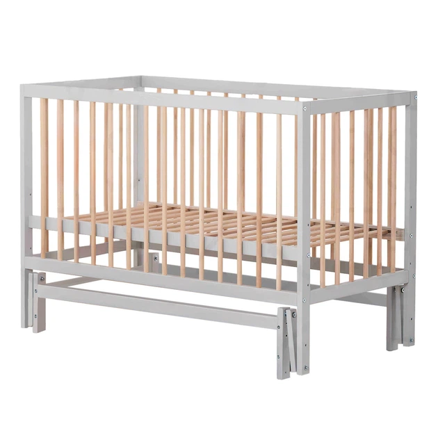 Ліжечко дитяче "Софія-2" - шарнір-підшипник з опускною боковиною (Сірий + натуральний)