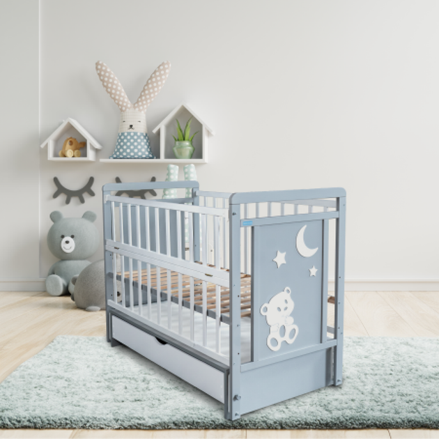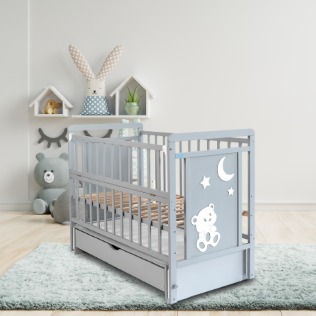 Ліжко дитяче Ведмежа Dominanta сіре з шухлядою 120х60