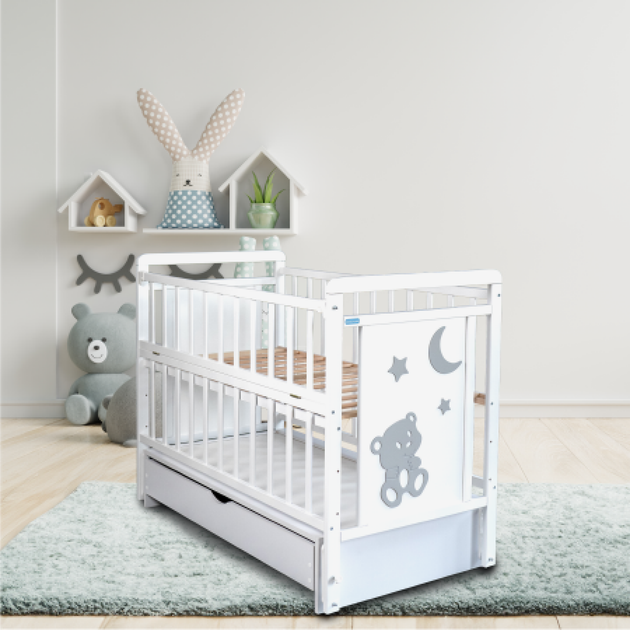 Ліжко дитяче Ведмежа Dominanta біла з сірим з шухлядою 120х60