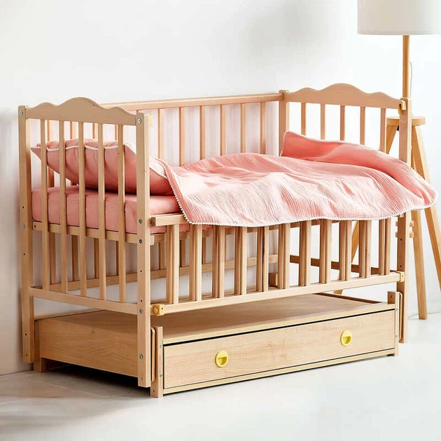 Ліжечко дитяче "Ангеліна" (1) шарнір-підшипник з відкидною боковиною+шухляда, бук (натуральна)