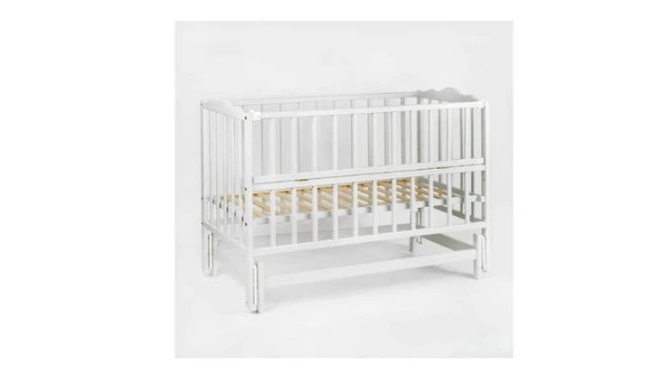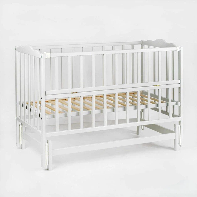 Ліжечко дитяче "Ангеліна-2" (1) шарнір-підшипник з відкидною боковиною, бук (білий)