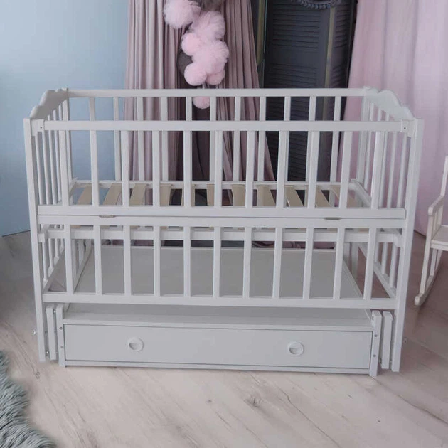 Ліжечко дитяче "Ангеліна" (1) шарнір-підшипник з відкидною боковиною+шухляда, бук (Білий)