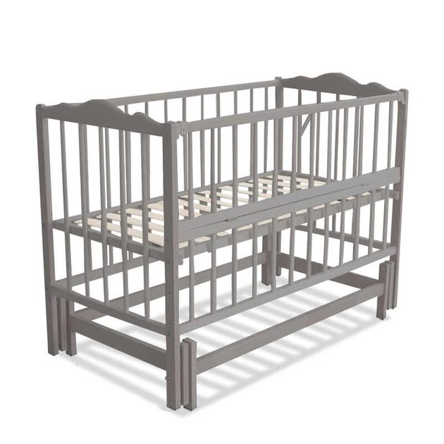 Ліжечко дитяче "Ангеліна-2" (1) шарнір-підшипник з відкидною боковиною, бук (Сірий)