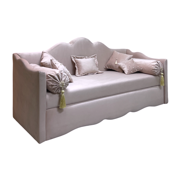 Дитячий диван для дівчинки MeBelle CHEVALIER 80х190 см з матрацом для щоденного сну, пудровий рожевий велюр