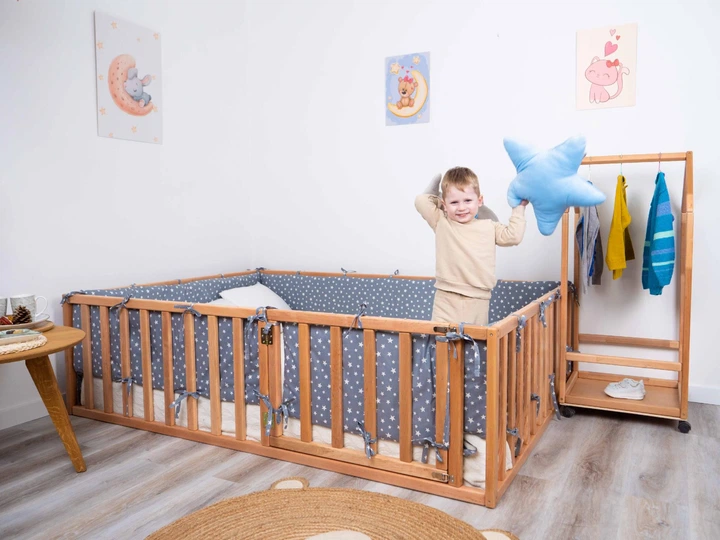 Дитячий дерев'яний манеж-ліжечко Монтессорі BUSY WOOD на підлозі Модель 6.2 190x80 см Натуральне дерево