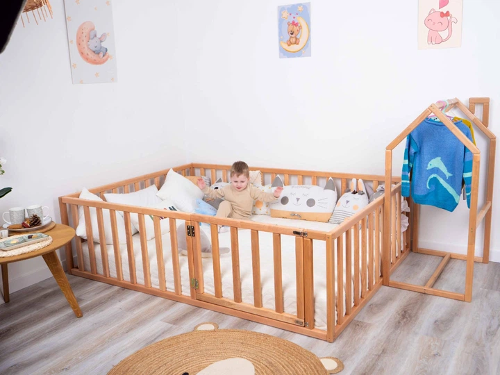 Дитячий дерев'яний манеж-ліжечко Монтессорі BUSY WOOD на підлозі Модель 6.2 160x80 см Натуральне дерево