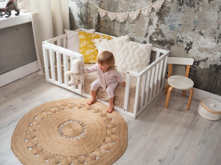Дитячий дерев'яний манеж-ліжечко Монтессорі BUSY WOOD на підлозі Модель 6.2 140x70 см Білий