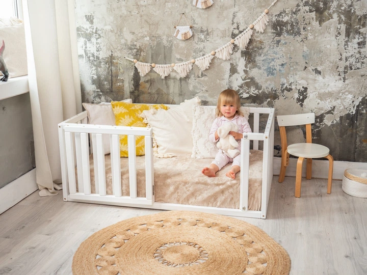 Дитячий дерев'яний манеж-ліжечко Монтессорі BUSY WOOD на підлозі Модель 6.2 200х140 см Білий