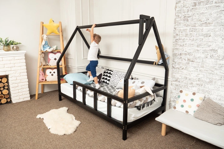 Дитяче дерев'яне ліжко будиночок Монтессорі BUSY WOOD на ніжках 190х140 см Модель 1 Чорне