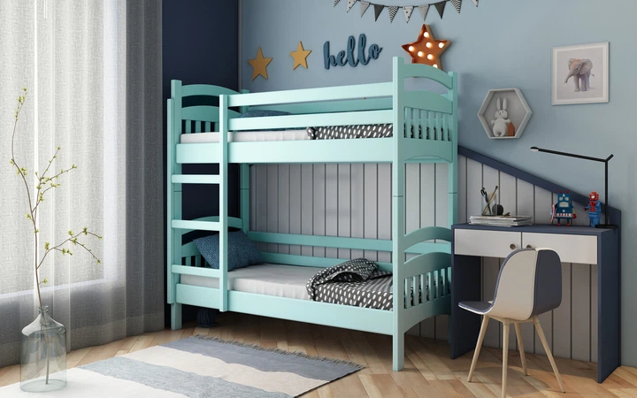 Ліжко двоярусне з натурального дерева сосна Лакки 90x200 м'ятний Stemma без ящиків