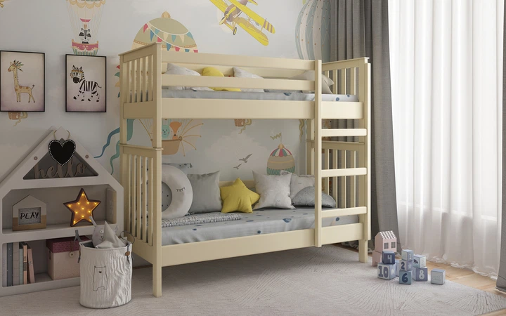 Ліжко двоярусне з натурального дерева сосна Фенікс 80x200 айворі Stemma без ящиків