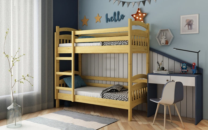 Ліжко двоярусне з натурального дерева сосна Лакки 90x200 вільха Stemma без ящиків