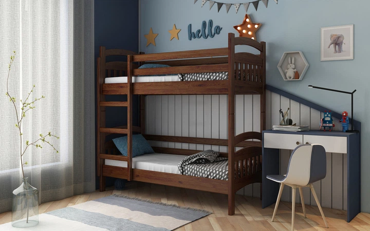 Ліжко двоярусне з натурального дерева сосна Лакки 90x200 махонь Stemma без ящиків