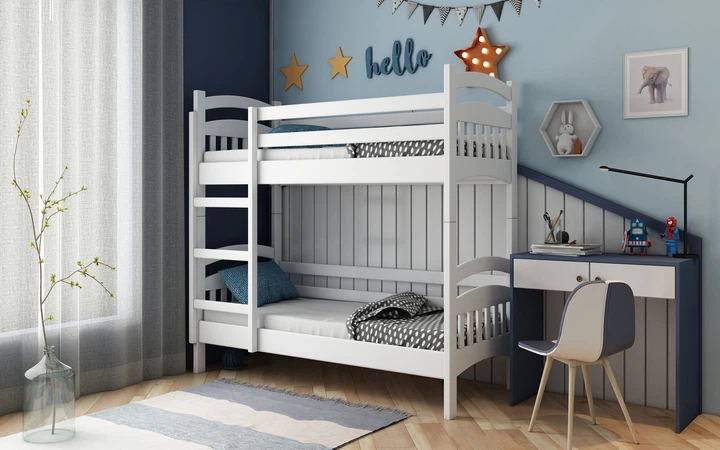 Ліжко двоярусне з натурального дерева сосна Лакки 80x200 білий Stemma без ящиків