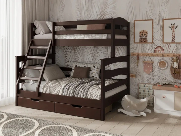 Ліжко двоярусне з натурального дерева сосна Остін 140х90х200 горіх темний Stemma