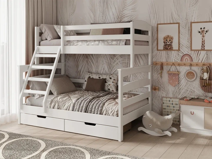 Ліжко двоярусне з натурального дерева сосна Олімп 140/90х200 білий Stemma з ящиками