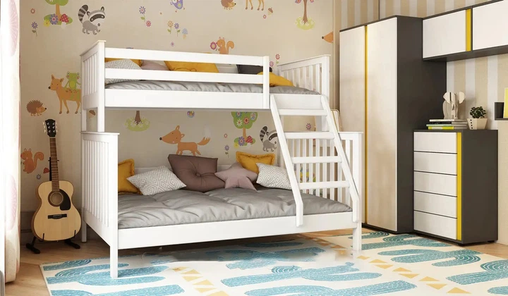 Ліжко двоярусне з натурального дерева сосна Остін 140х90х200 білий Stemma