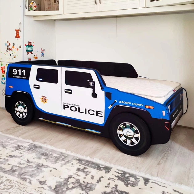 Ліжко машина Джип Поліція 70x150 см., з матрацом Slim Roll та м'якими бортиками