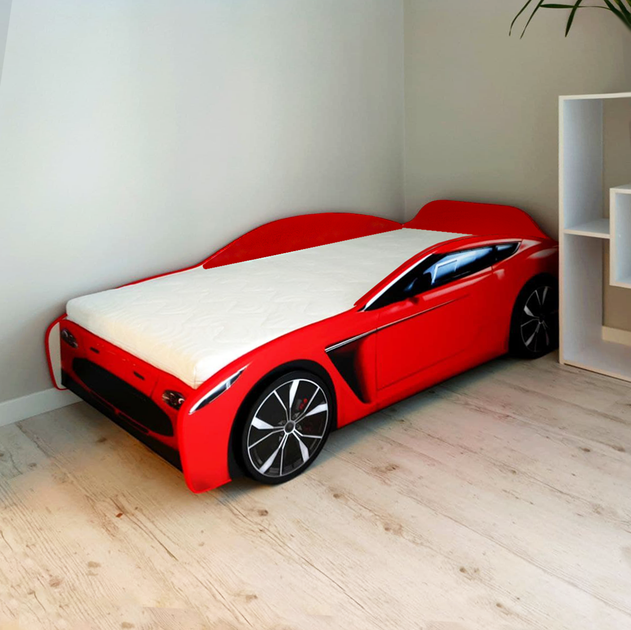 Ліжко машина Red 70*150 см. з матрацом Slim Roll та м'якими бортиками у комплекті