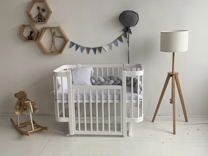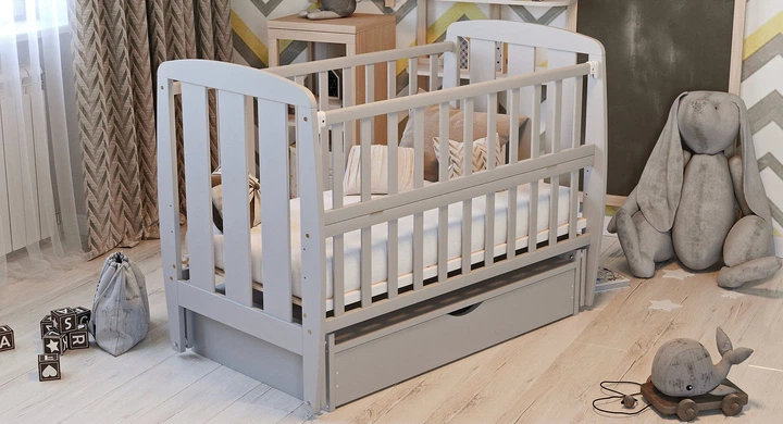 Ліжко дитяче Мія біло-сіре з маятником