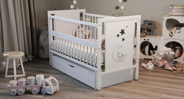Дитяче ліжко Дубик-М Ведмедик з шухлядою та маятником (Білий)