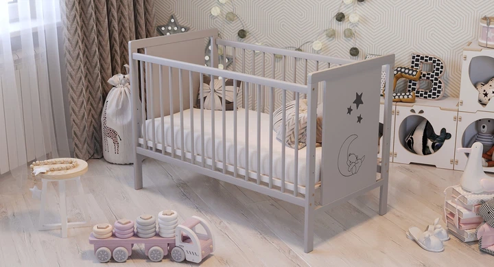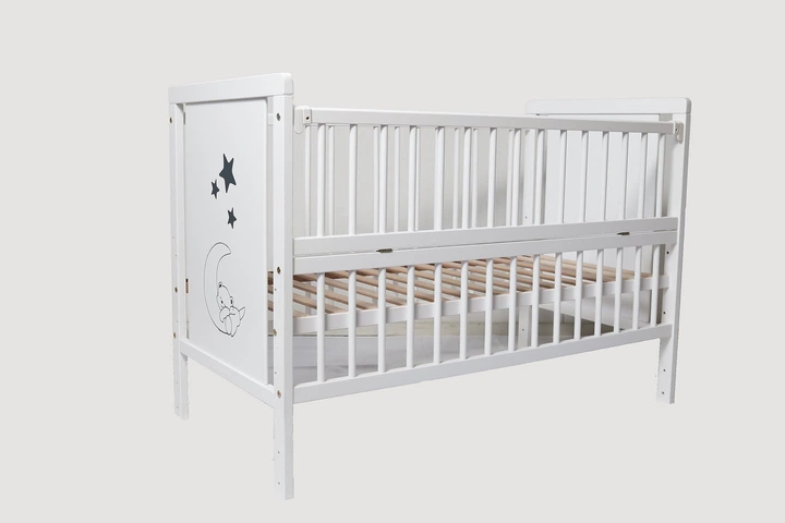 Дитяче ліжко Дубик М відкидна боковинка Сіре малюнок Ведмедик