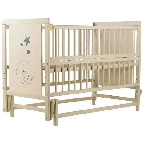 Дитяче ліжко Дубик М 120х60 маятниковий механізм Слонова кістка малюнок ведмедик