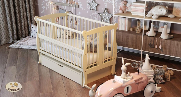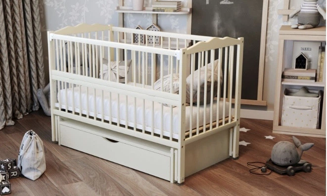 Дитяче ліжко Дубик М 120х60 маятниковий механізм Слонова кістка з шухлядою Грація
