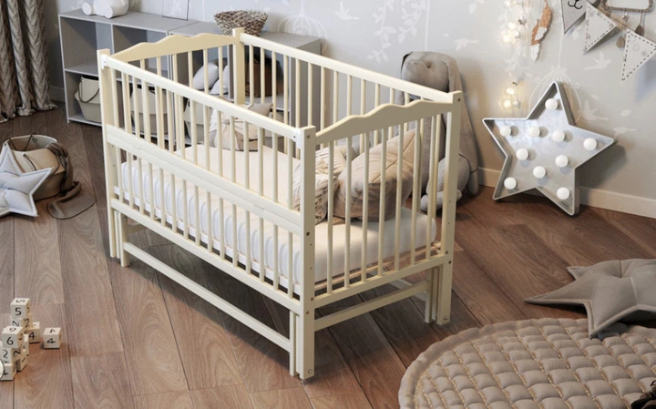 Дитяче ліжко Дубик М 120х60 маятниковий механізм Слонова кістка Веселка