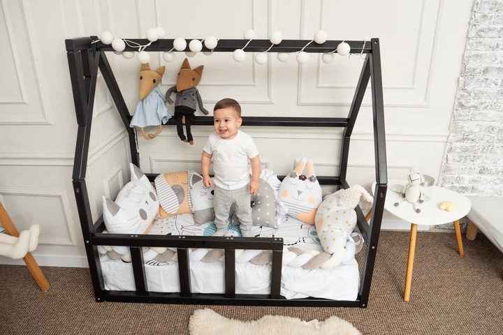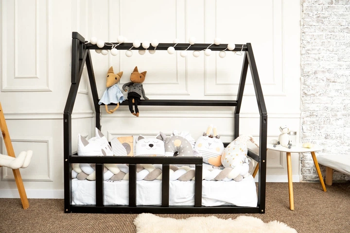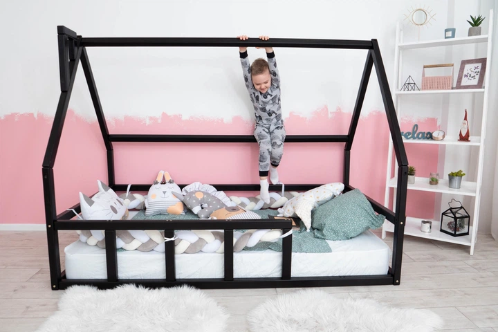 Дитяче ліжко будиночок Монтессорі BUSY WOOD підлогове з ламелями Модель 1 200х90 см чорний